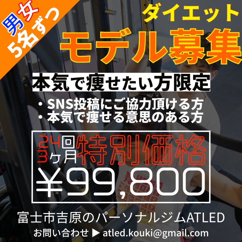 【富士市パーソナルジム】ダイエットモデル募集! | Personal GYM ATLED